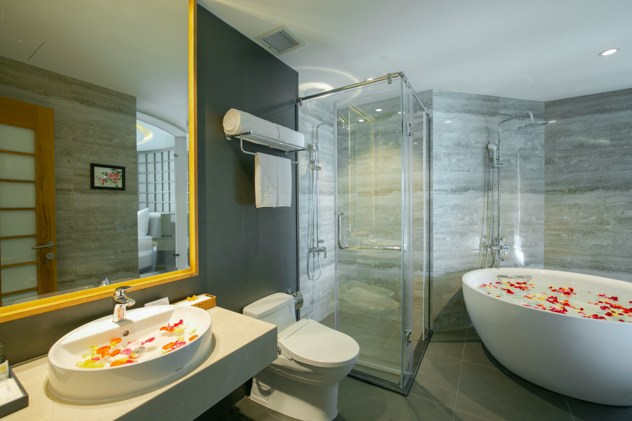 峴港薩拉海灘飯店(Sala Danang Beach Hotel)2019年才重新裝修完成,設施部份翻新且乾淨,與美溪沙灘僅相隔了一條馬路。海景房一晚一千多元的價格即能入住,房間空間也大,部份房型還有大浴缸,飯店裡Spa、按摩、健身房、兒童遊戲室一應俱全。
