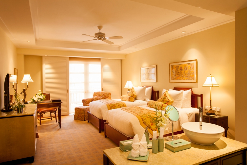 裝潢氛圍舒適,房間擺設高雅寬敞,有著落地窗和陽台,舒服的床及寢具,窗外的視野極佳,可以看到順化市令人驚嘆的夜景,一掃旅遊的疲憊。房間幾乎無可挑剔,只是房間提供的飲料價格稍貴了些。因為飯店就位在順化熱鬧的中心點,周圍有很多步行即可到達的餐廳,隔壁就有大超市Big C,再遠一點有水果市場,直接步行前往購買必需品非常便利。