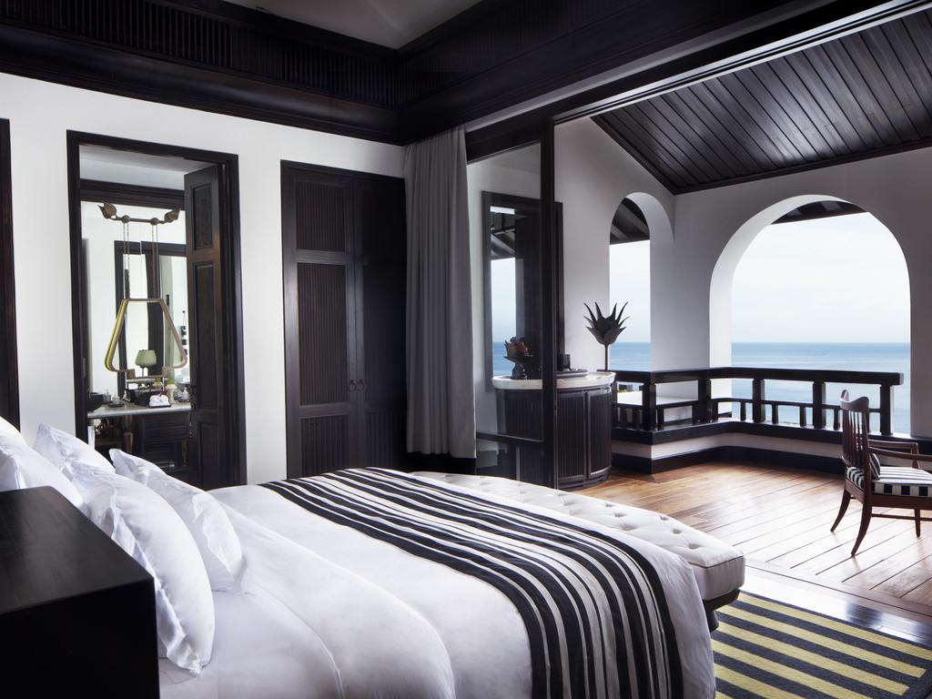 錯落分佈在整片山上的房間,考究的設計,讓每間房間隱密性夠且不容易受到其他房客干擾。房內空間雖然不算太大,但不管是躺在床上還是泡在浴缸裡,在房內每個角落,無敵海景皆能一覽無遺。每個房間幾乎都有一個超寬闊的露台,並配置了躺椅、沙發或兩人雅座,讓房客在房間內便能好好享受眼前的美麗景緻。