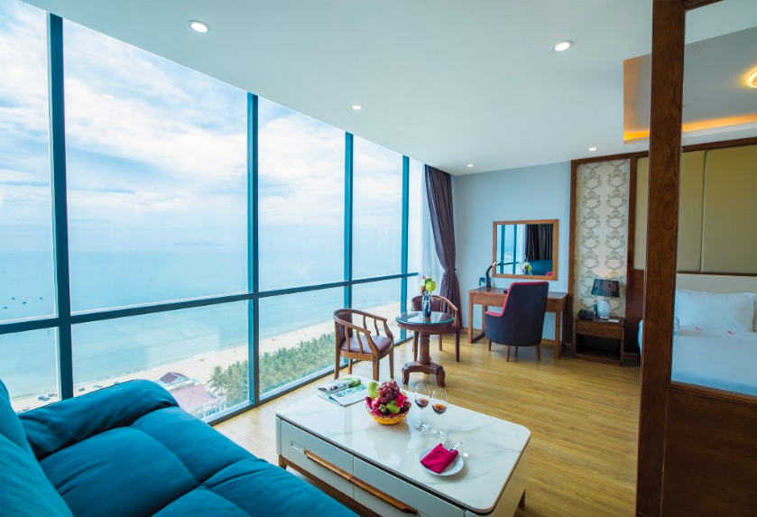 峴港湛藍海景與絕美白沙海岸線,曾被《福布斯雜誌》評選為世界最美海灘之一,在美溪沙灘僅兩分鐘距離,有一家充滿現代感的飯店峴港勒晃海灘飯店(Le Hoang Beach Hotel),兼具交通機能也能輕鬆前往觀海。步入飯店大廳就對氣派寬敞的空間頗有好感,以及親切的櫃檯人員有問必答、協助解惑,為第一印象加分不少。