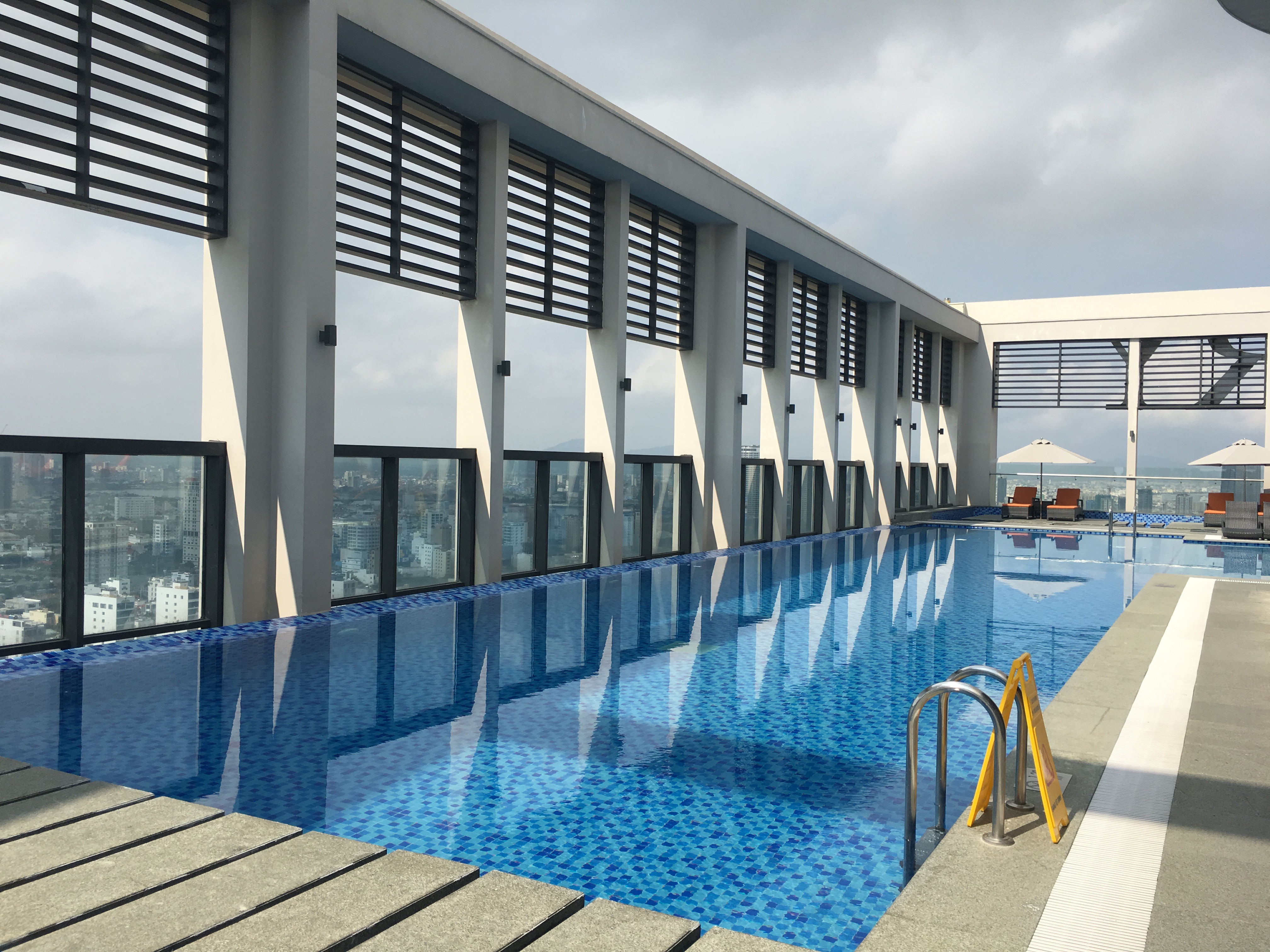 飯店頂樓有泳池,也有酒吧,早起晨泳欣賞日出、傍晚到酒吧欣賞日落,飯店也有健身房,基本的設施算是一應俱全。