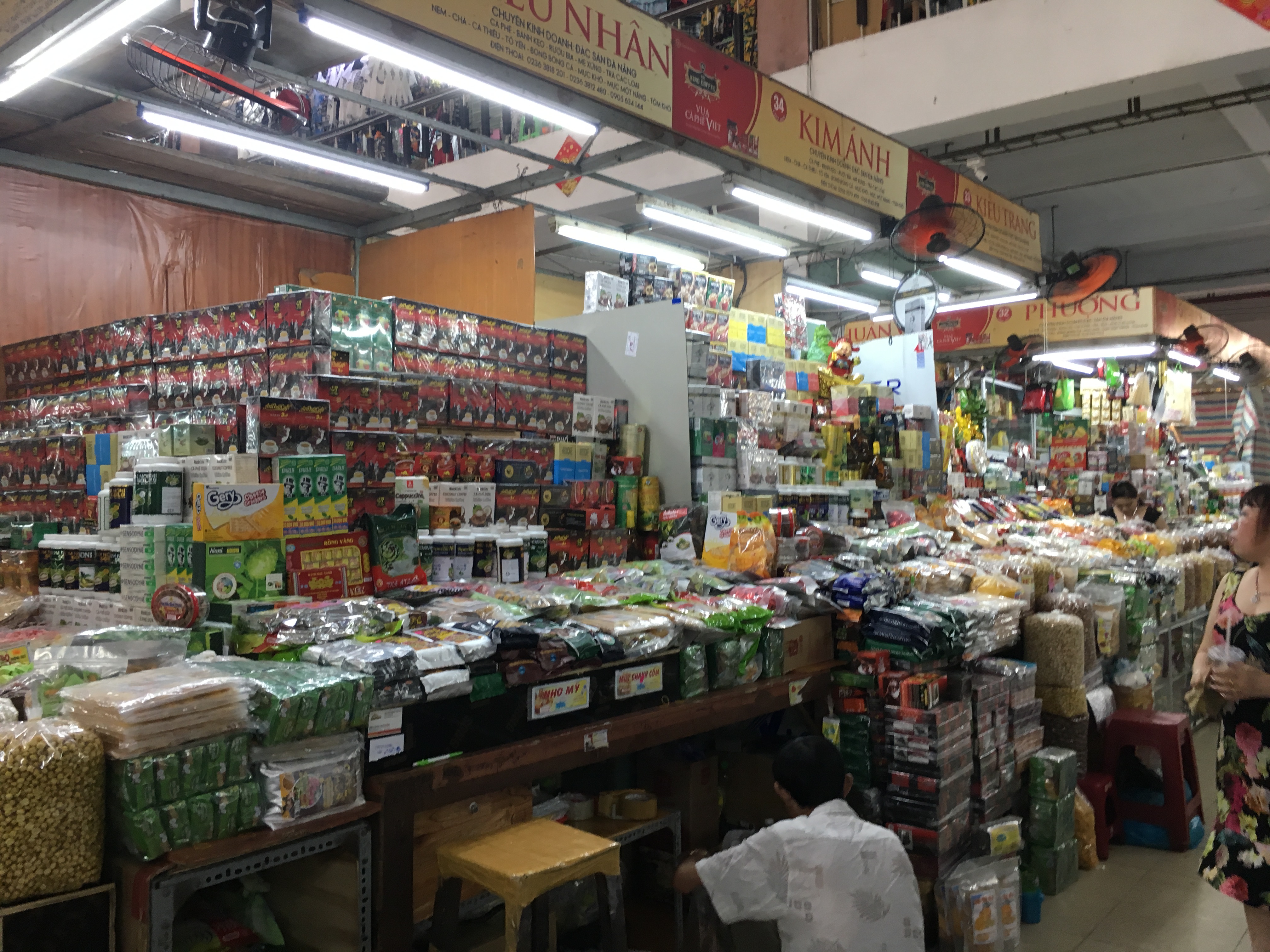 因這裡的價格比其他地方便宜,不少遊客會在此購買果乾、咖啡、腰果等伴手禮,其他還有像是竹編的包包、帽子、紀念磁鐵、小飾品等,想要選購手信的朋友,別忘了與店家議價一下。和Con市場一樣,店家擺設貨品相當擁擠,因此走道十分狹窄,人潮較多時,也不忘要多加留意自己的包包喔。