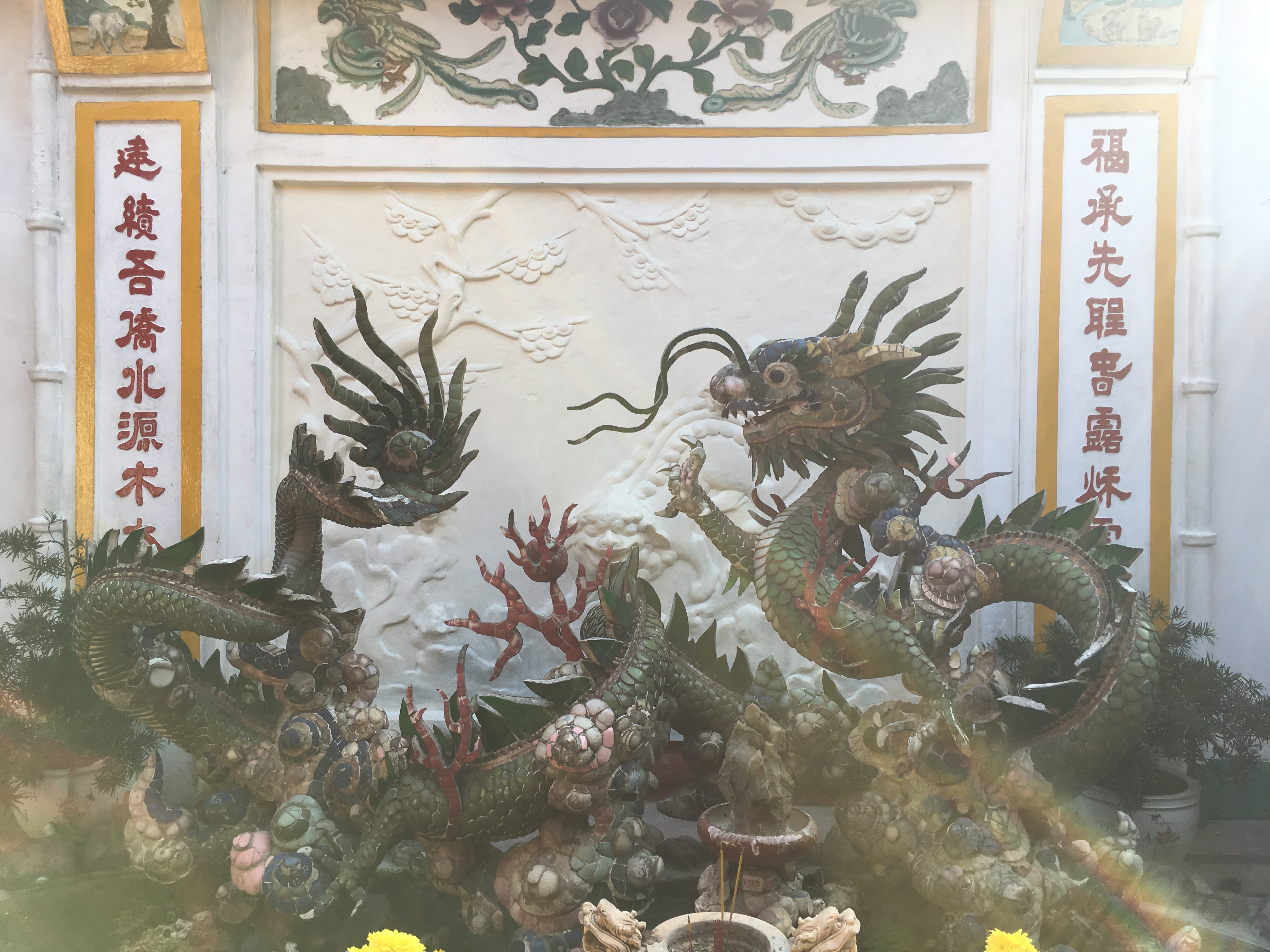 早年會安曾是轉運港口,很多中國人來此經商或定居,因此造就此地有不少供華人聚會的會館所,而福建會館算是其中規模最大的。這裡供奉天后娘娘(亦即媽祖),裡頭還有一艘木造古帆船模型,象徵當時華人往返貿易時之商船,也寄望得到媽祖的保佑。庭院種植桃花,爭奇鬥豔,也可以想見當年的繁華盛況。